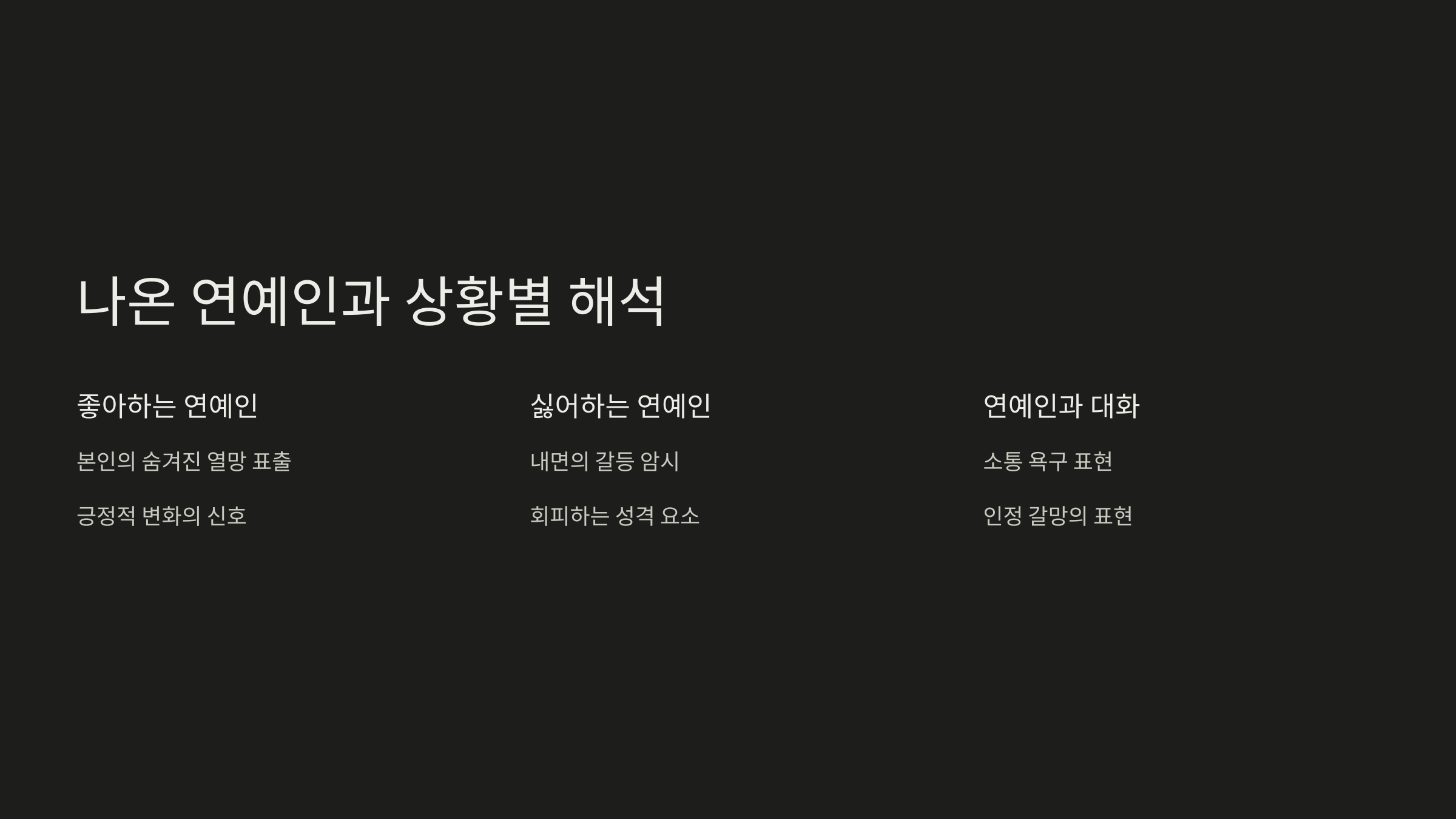 | 연예인과 대화함 | 내면 대화 | 자기 인식의 시작 |