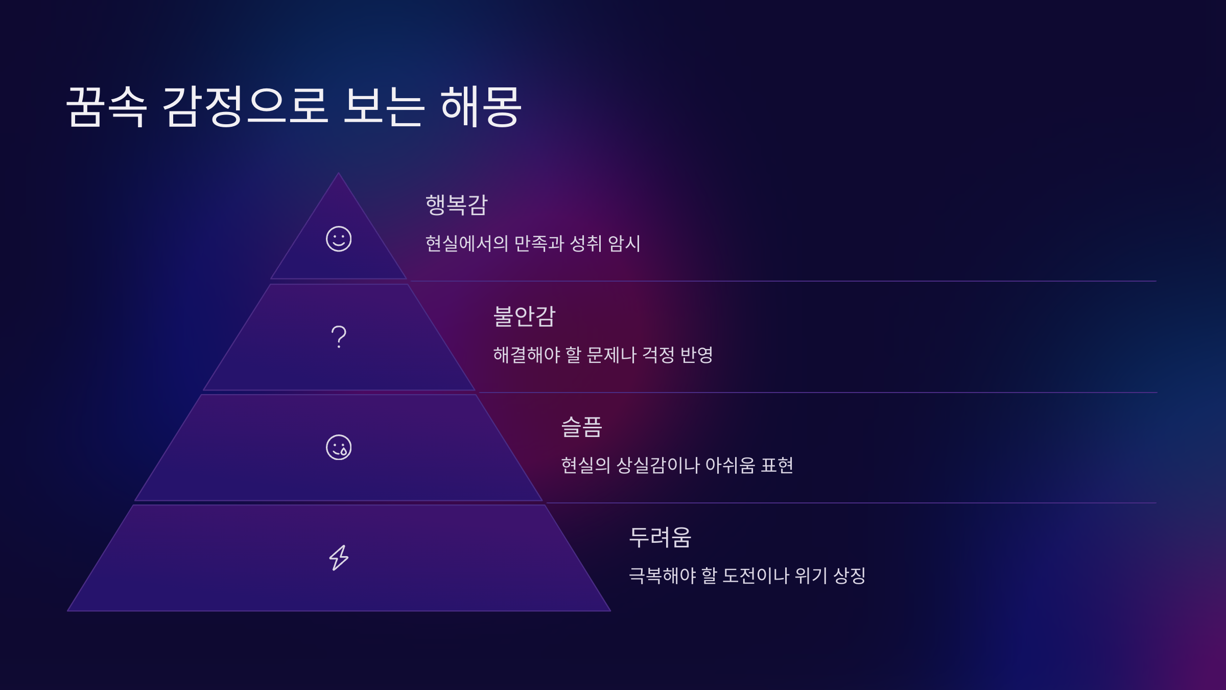 감정은 무의식의 거울이기 때문에, 꿈의 상황보다도 ‘내가 느낀 감정’이 더 중요한 단서가 되곤 해요. 감정을 중심으로 해석하면, 내 마음속에서 어떤 감정이 눌려 있거나 피어나고 있는지를 파악할 수 있어요.