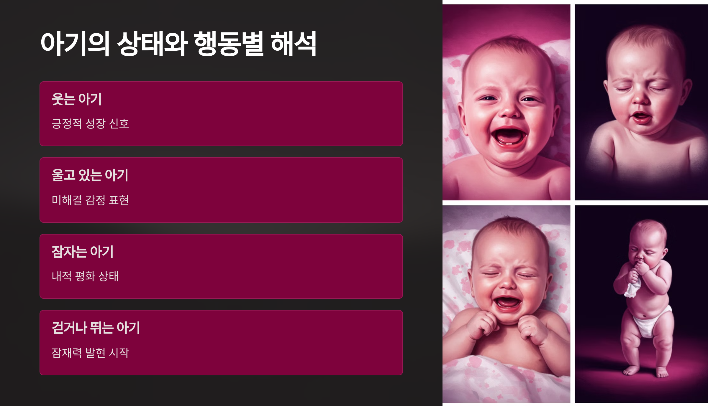 태그:아기 꿈 해몽, 감정 회복, 무의식 상징, 새로운 시작, 감정 치유, 창조성 꿈, 성장의 징조, 자기 내면 해석, 웃는 아기 꿈, 꿈속 감정 해석