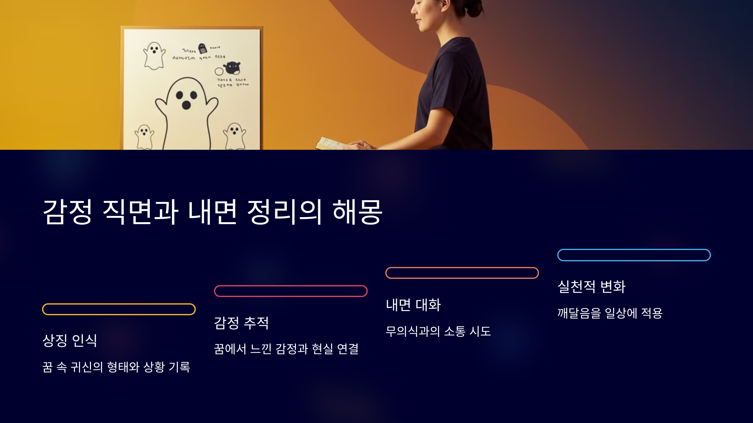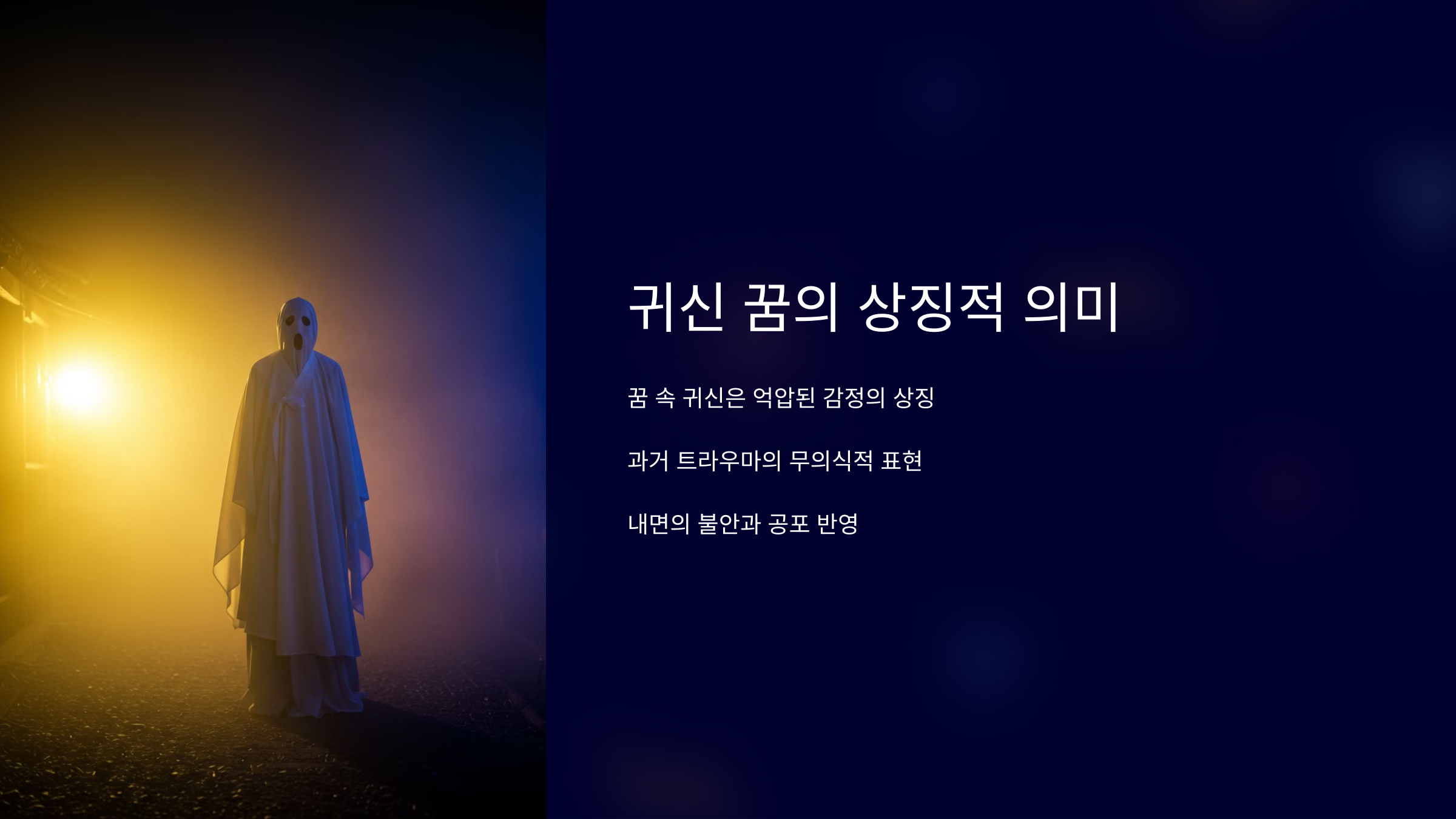 귀신의 등장 방식은 그 자체가 내 감정 상태의 은유예요. 나는 지금 어떤 감정과 마주하지 못하고 있는지 생각해보면, 그 귀신의 의미를 자연스럽게 이해할 수 있어요. 🧠