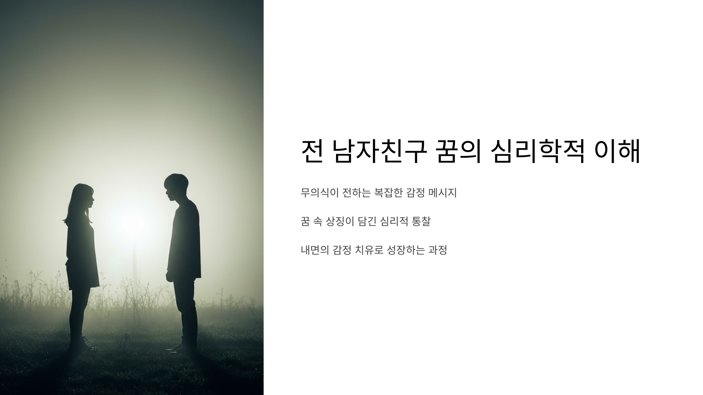 전남자친구 꿈은 종종 감정의 정리와 자아 성장의 과정을 보여주는 거울이에요. 무의식은 말해요. “너, 이 감정 아직 품고 있어. 근데 이제는 놓아도 돼”라고요.