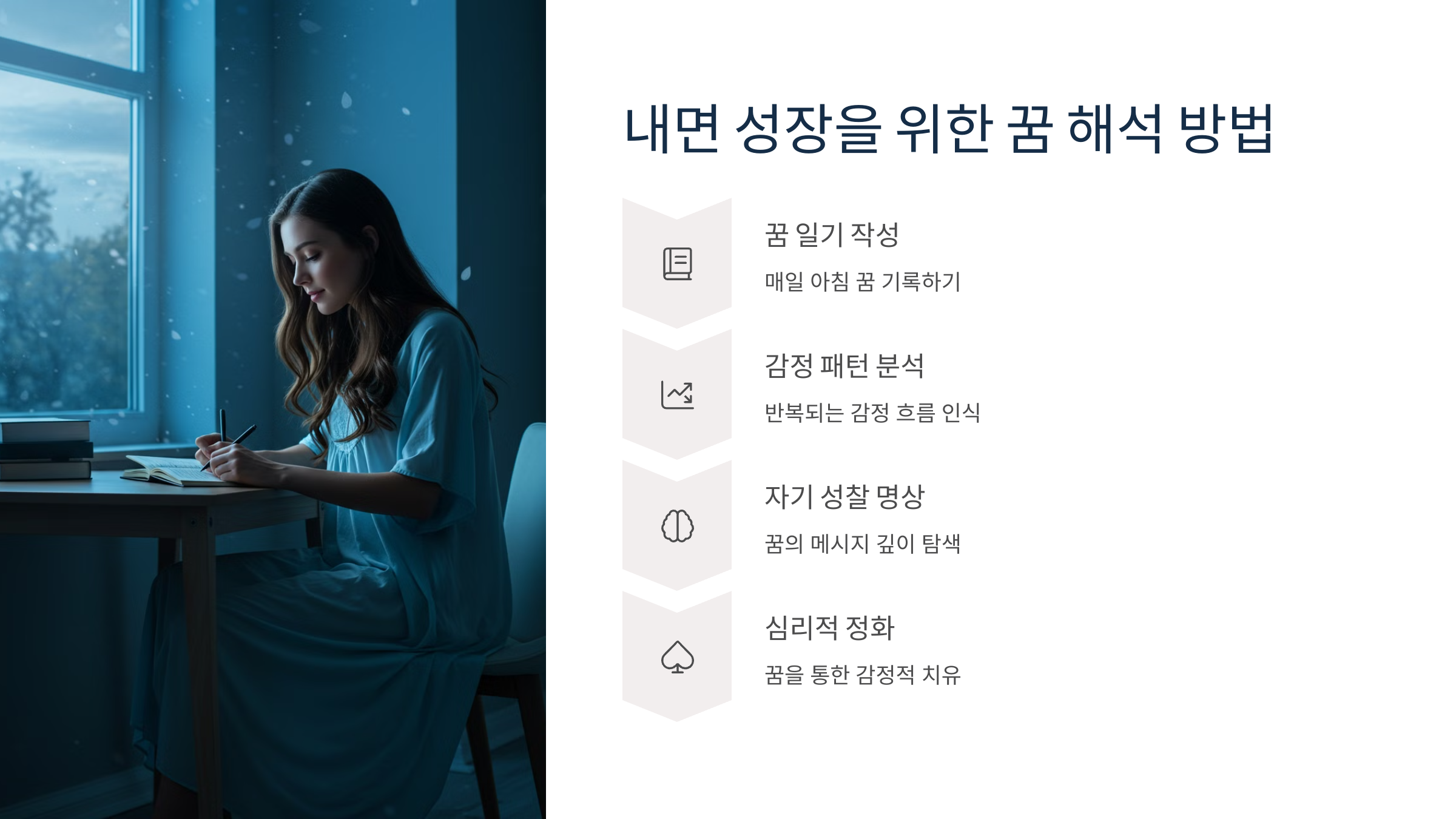 이 꿈을 꿨다는 건, 마음이 정리를 원하고 있다는 뜻이에요. 감정을 회피하기보다는, 천천히 들여다보면 내면의 균형이 다시 잡히기 시작할 거예요.